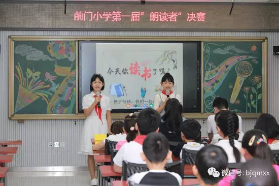 中央电视台的《诗词大会》和《朗读者》节目掀起了全民读书的热潮。为了激发学生读书的兴趣,提高学生的朗读能力,伴随东城区第三届书香文化节,我校也举行了“让阅读成为一种习惯”首届“朗读者”评选活动。