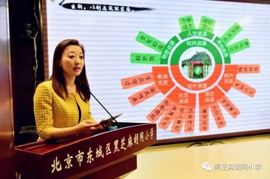 2017年5月24日上午,黑芝麻胡同小学优质教育资源带召开了主题为《志道游学 守正出新》中华优秀传统文化课程展示现场会。北京教科院课程中心课程室主任、“遨游计划”项目负责人朱传世,东城区研修中心主任马福贵,东城区教师研修学院郭鸿院长,东城区课程部、教科所的领导,以及“遨游计划”项目实验校的老师们参加了此次活动。会上,吴健校长做了主题汇报。与会领导及教师观摩了学校的传统文化课程展示。
