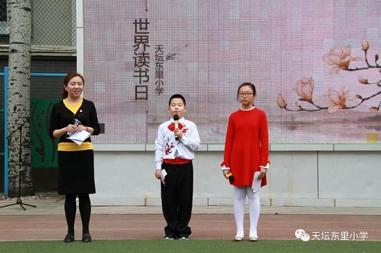 今天也正是世界读书日,随着彭爱军校长宣布读书日活动开始,欢快的快板书随之响起,二年级的《唱阅读》拉开了读书日活动的序幕。