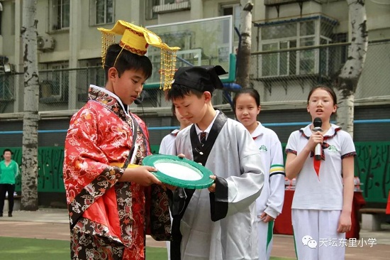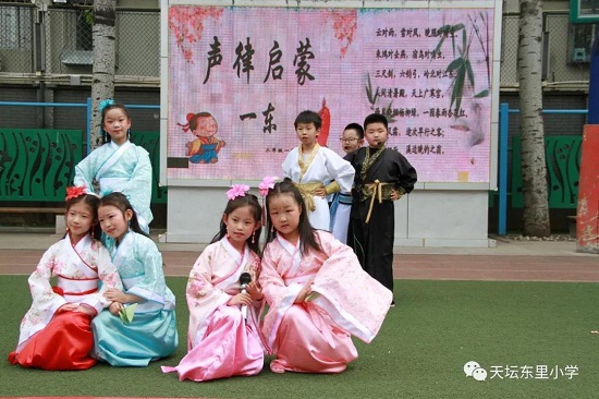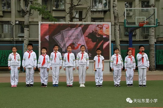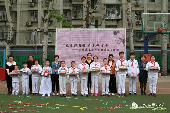 4月23日下午东城区天坛东里小学的同学们齐聚在天坛古刹边,开展了“春日伴灵童 开卷话书香”的主题读书日活动。