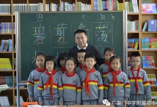 广中附小聘请著名汉字书写专家袁强老师为书法课指导教师,并针对语文部编教材编定广小写字课指导教材。袁老师每节课细致入微地讲解,使更多学生爱上了写字。