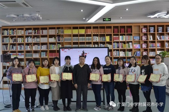 学校教师书写培训与学生教育同步进行,并为年轻教师开设书法研习班。12位有书法爱好的年轻教师拜袁老师为师,跟随袁老师一起学习毛笔字,促进教师书写能力向更高层次提升。