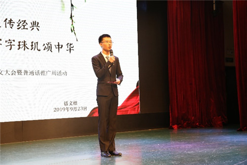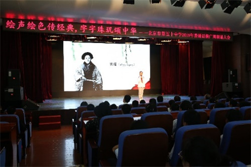 2019年9月23日,由北京市第五十中学语文教研组主办的“绘声绘色传经典 字字珠玑颂中华”2019年普通话推广周朗诵大会在学校礼堂举行,这也是今年学校普通话宣传推广活动的压轴,全校学生共同参加了活动。