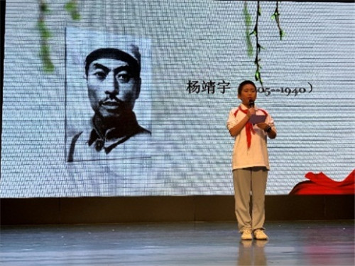 初一年级的学生们带领大家回望革命和建设年代的峥嵘岁月,满怀激动之情地讲述了英雄的光辉事迹。从慷慨赴死的巾帼英豪秋瑾,到坚贞不屈的钢铁战士杨靖宇;从纵横星际探索新知的张钰哲,到扎根稻田艰苦奋斗的袁隆平,同学们用稚嫩、质朴的语言表达了对英雄们高尚风操的崇高敬意。