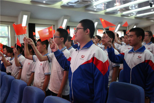 最后,全场师生挥舞着手中的国旗合唱《我和我的祖国》,共同唱出对祖国母亲的深情,大会在高亢而嘹亮的歌声中落下帷幕。