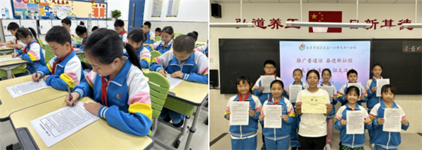 国家教育行政学院附属实验学校组织开展以“推广普通话 奋进新征程”为主题的班会活动,通过知识抢答、绕口令、常用词挑战等环节,充分激发学生们说好普通话、规范使用汉字的热情。