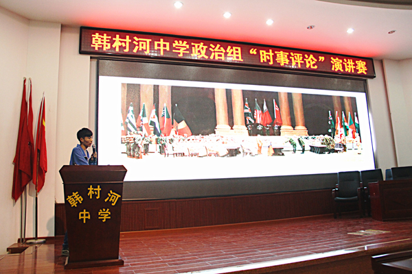 为进一步深化基础教育综合改革,提升学生学科素养,培养学生实践、创新能力,把深综改指导思想落到实处,韩村河中学从学科教学上积极行动,初见成效。 2016年5月16日下午3点到5点,韩村河中学政治学科组组织学生在阶梯教室举办了一场别开生面的“时事评论演讲赛”。