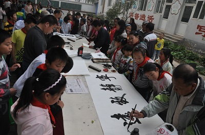 为“弘扬民族书画艺术,传承民族文化”,推进“书法名家进校园”活动,2014年10月10日,房山区语委办、区关工委、长沟镇老年书画研究会在房山区长沟镇北正小学举行书画作品展及现场书写绘画活动。