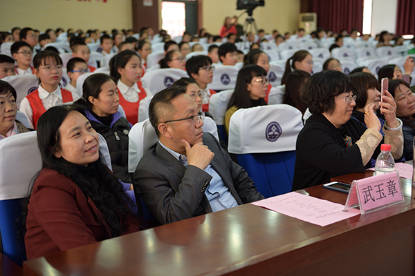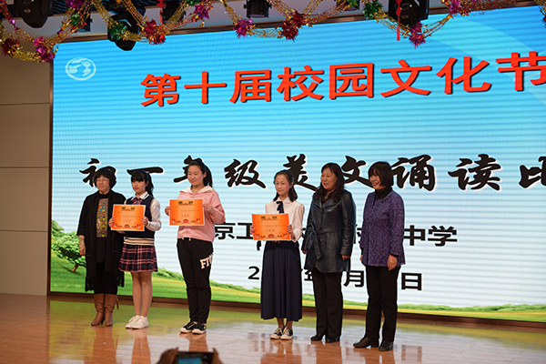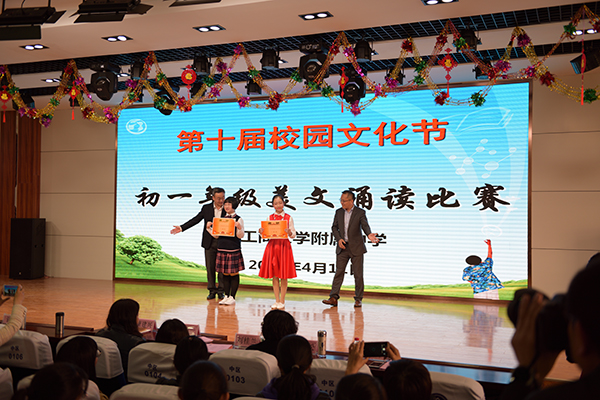 4月11日下午,北京工商大学附属房山中学组织开展了第十届校园文化节之初一美文诵读活动。北京阅读分会副主席若丹、房山区文化活动中心非遗保护部部长黄莉、区朗诵协会会长王凤江、副会长高国峰、北京阅读分会秘书长赵晓义五位专家担任评委,房山区教委副主任武玉章、区语委办主任康建兴、教师进修学校教研员高淑一、刘桂兰、马晓松、北京工商大学团委刘陈晨老师和初一年级全体师生及校领导参加了活动。