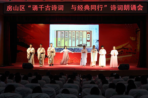 为深入开展高中学生语文实践活动,展示师生语文核心素养,践行社会主义核心价值观。5月23日,区教师进修学校、区语言文字工作委员会在房山中学报告厅联合举办了房山区“诵千古诗词·与经典同行”诗词朗诵会。