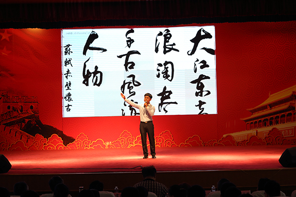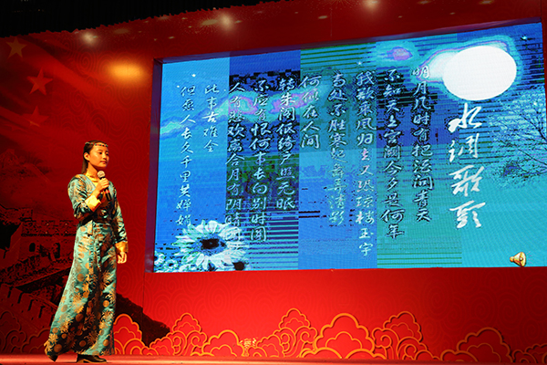 9所高中校的60名学生为在场的观众展示了自编自导的《水调歌头·明月几时有》《师说》《我骄傲我是中国人》等13个诗词朗诵节目。学生们准备充分、配合协调、表演精彩,博得了评委老师和在场观众的阵阵掌声。最后房山中学教师王磊、周口店中学教师宋祥博为高一学生进行了现场示范朗诵。