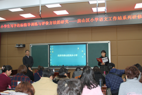 为提高语文教学实效,提升学生语文核心素养,日前,房山区在良乡小学举办了以“小学生写字达标指导训练与评价方法的研究”为主题的“房山区小学语文工作站系列研修活动”。写字课题组指导专家、北京市特级教师、原北京教科院基教研中心小学语文教研室李春旺主任,房山区小学教研室王雅薇主任、教师进修学校六位语文教研员,写字实验校的领导和老师们参加了此次活动。