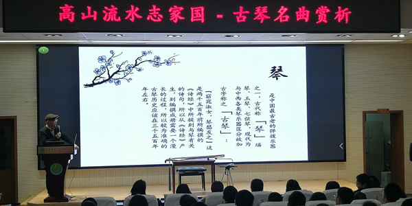工作室邀请中央音乐学院毕业的张启航老师作为主讲嘉宾,张老师为学生讲述了古琴的结构、古琴的历史、古琴的记谱法等古琴相关知识,现场演奏了《关山月》《流水》《梅花三弄》《广陵散》《阳关三叠》等古琴名曲,现场请学生代表上台体验古琴演奏技巧。老师们与同学们近距离的观摩了指尖上的舞蹈。现场所有人陶醉其中!
