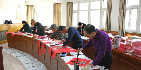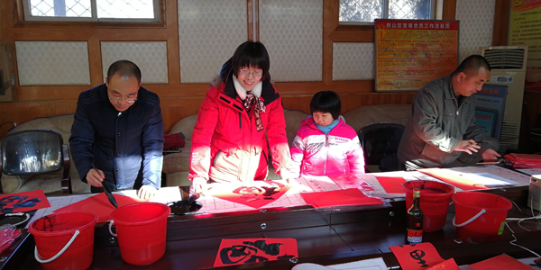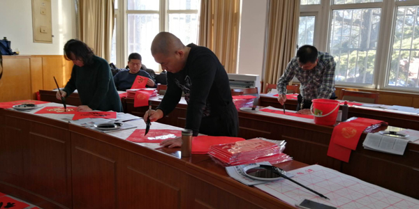 房山区教师书法社团开展送福写春联活动
