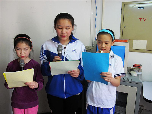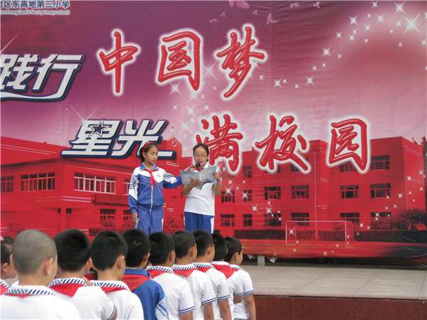 王雅丽副校长进行了题为《推广普通话,共筑中国梦》专题讲话,向全体师生发出倡议。随后,六年级2班的升旗手薛晓慧同学代表全校同学发言。学校红领巾广播每天播报有关推广普通话和规范化书写的宣传,“最爱说的说永远是中国话,字正腔圆落地有声说话最算话。”的余音缭绕校园。