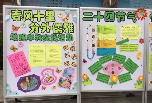长辛店学校地理备课组开展了“二十四节气”学科实践活动。学生通过查阅资料,了解二十四节气是怎样形成的。收集二十四节气农谚、诗歌、习俗等,制作节气与农业、节气与诗词、节气中的习俗等方面的展板。全校同学参观展板,对其内容进行学习交流,分享自己的心得和感受。目前,长辛店学校已经完成了立春、雨水、惊蛰、春分和清明的学科实践展示。