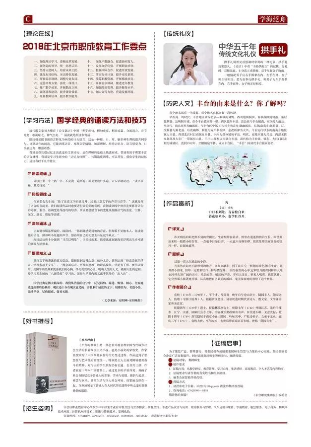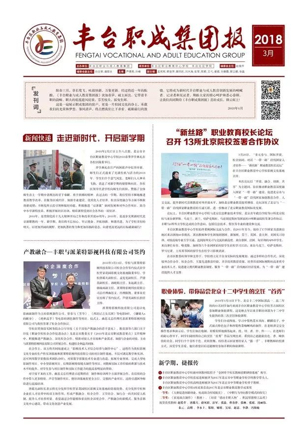 经过将近一年的酝酿,《丰台职成集团报》犹如春笋,破土而出,它带着丰职的韵味、职大的底蕴迎风绽放,芬芳枝头,摇曳生辉。