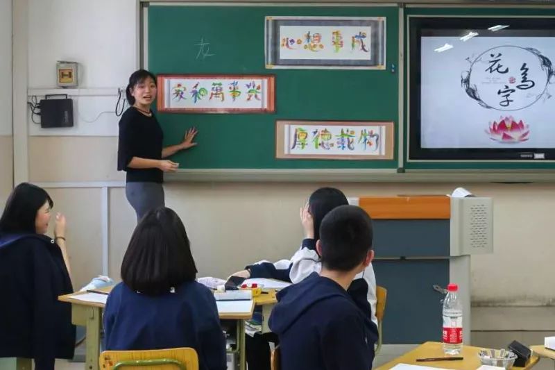 “在中国古代神话传说里,龙在天则腾云驾雾、下海则追波逐浪、在人间则呼风唤雨,无比神通广大。封建时代龙是权势、高贵、尊容的象征,象征着祥瑞。”在今天的《花鸟文字》体验课上,何老师要带着外国学生学习绘制花鸟字“龙”。听着何老师的介绍,外国学生们已经迫不及待要画出他们眼中的“中国龙”。
