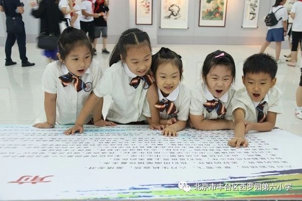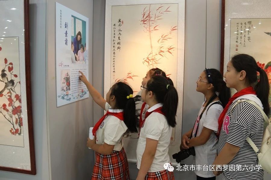 日前,西罗园第六小学举办的“童心向美好,描绘新时代”师生书画展在大兴区文化馆开幕。6月23日上午,学校又组织了七彩葵艺社的学生、家长100多人前来参观学习。