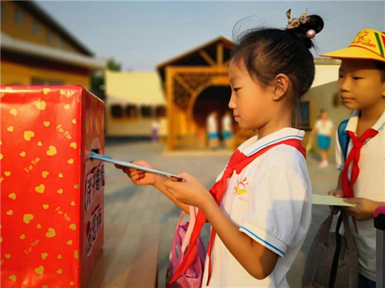 在第34个教师节来临之际,阳春小学的孩子们与家长一起参与了“诗书寄情谢恩师”——我给老师写封信活动。10日一大早,孩子们拿着亲手写的书信,有秩序的走进校园,投到少先队准备的信箱中。