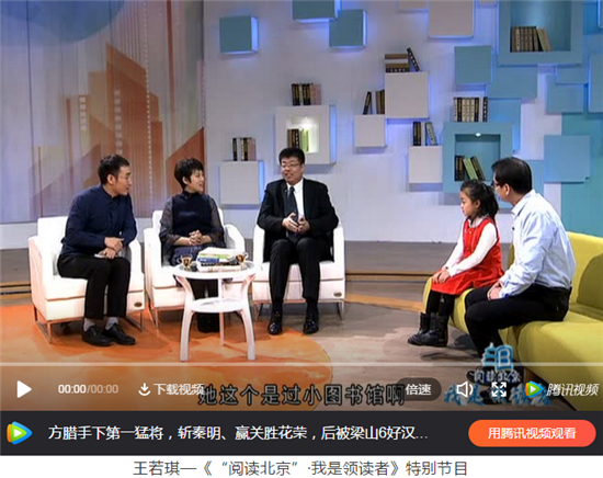 11月28日,丰台区阳春小学王若琪同学作为“读书小状元”代表受邀参加了首都市民系列文化活动——“阅读北京”年度盛典。