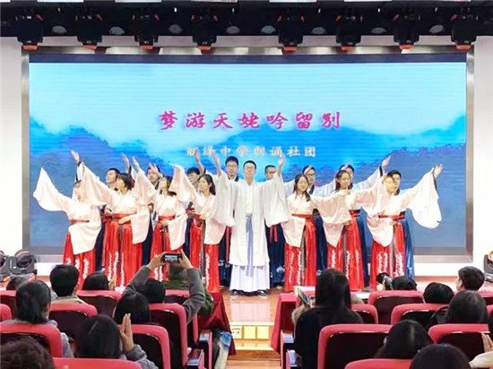 丽泽中学的学生们精心准备了课程建设成果展示:诗歌朗诵《梦游天姥吟留别》和戏剧表演《醉梦》。学生的精彩表演获得了一致好评。