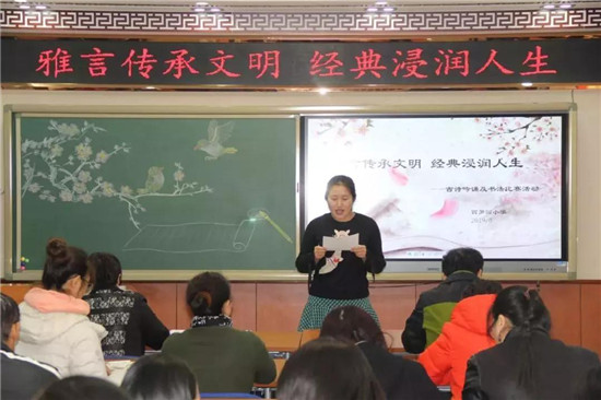3月8日,西罗园小学全体教师齐聚一堂,举行了《雅言传承文明,经典浸润人生》的赏、诵、临古诗词活动。