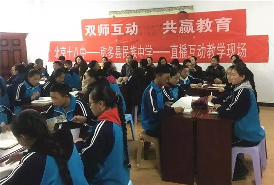 3月27日,青海玉树藏族自治州称多县第一民族中学与北京市第十八中学近百名师生利用智能双师系统进行了一次远程面对面学习与交流活动。活动主会场设在北京市第十八中学创客教室,分会场设在称多县第一民族中学的创客教室。