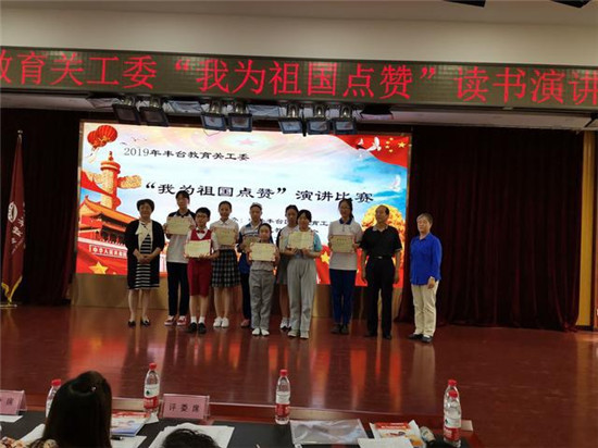 近日,为庆祝中华人民共和国成立70周年,北京市丰台区教育关工委在首经贸附中举办“新时代好少年‘我为祖国点赞’”读书演讲比赛,丰台区各中小学参赛选手、辅导教师近200人参加活动。