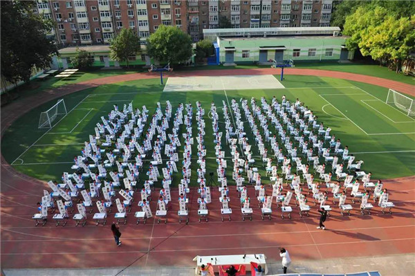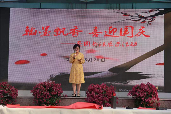 “书香秋韵满葵园,翰墨丹青颂祖国!墨迹未干,豪情难尽!来,葵葵们,让我们举起自己书写的作品,这是我们献给伟大祖国的‘生日礼物’,一起祝愿我们的祖国——富强、繁荣、昌盛!”随着主持人的话音未落,学生们纷纷高举手中的作品,顿时,操场上沸腾起来。