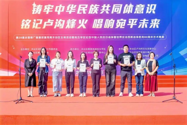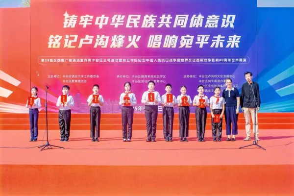 9 月 21 日,永定河畔卢沟桥头,千年古桥见证着一场兼具语言文化传承与爱国主义教育的生动实践 —— 北京市丰台区语言文字工作委员会在此举办 “铸牢中华民族共同体意识 铭记卢沟烽火 唱响宛平未来” 第 28 届全国推广普通话宣传周丰台主场活动,同步开展宛五学区纪念中国人民抗日战争暨世界反法西斯战争胜利 80 周年艺术展演。活动以创新形式将推普工作与育人使命深度融合,依托区域红色资源打造 “行走的思政课”,为青少年成长注入精神力量与文化底气。