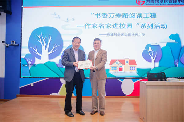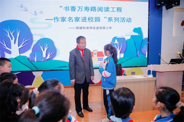 4月23日,培英小学五年级的同学们迎来了人民日报社会经济部高级记者、中国农业大学客座教授蒋建科老师。学区副主任左卫东等有关部门领导参加了本次活动,并为蒋建科老师颁发“书香阅读工程”指导专家聘书。