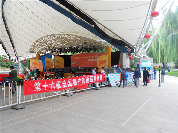 2013年9月11日至17日是第16届全国推广普通话宣传周。为了全面贯彻国家语言文字法律法规,深入宣传《中华人民共和国国家通用语言文字法》,进一步增强怀柔市民说好普通话,写好规范字的意识,营造优良语言文字环境,怀柔语委办下发通知,号召各机关单位、镇乡和学校积极开展多种形式的推普周宣传活动。怀柔语委办于9月15日在怀柔万米健身公园集中开展了主题为“推广普通话,共筑中国梦”的推普宣传活动。此次活动利用横幅、展板、现场讲解和有奖答题等形式,向广大市民进行了语言文字法规和知识的宣传,共发放宣传资料8000余份,受到市民的一致好评,起到了良好的宣传推广作用。