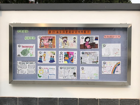 活动中,我校张贴了推广普通话的宣传海报,利用电子屏显示“讲普通话 写规范字 做和雅黑小人”、“说好普通话,沟通你我他;使用规范字,方便千万家”等宣传语,形成推广普通话、促进语言文字规范化的良好氛围。利用午间广播,解读活动方案并倡议全体师生在平时的工作生活中讲普通话、写规范字,自觉维护民族荣誉,崇尚祖国汉语言文化。