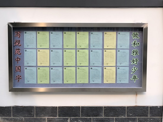 以此同时,还开展了教师粉笔字书写展示活动,以发挥教师以身示范的作用,督促教师规范用字;为了培养学生从小规范书写汉字的良好习惯,我校以“写规范中国字 做和雅好少年”为主题进行了规范汉字书写活动,全校学生共同参与,优秀书写作品在全校进行展示。还下发了《致家长的一封信》,发动学生运用在校所学的知识纠正家庭里存在的方音、方言及不正确用字的现象,“小手拉大手”号召家长讲普通话、写规范字,真正实现一个学生带动一个家庭,让推广普通话工作从校内辐射到校外。