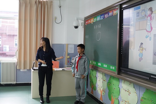 课堂观摩环节,分别走进了我校四1班语文课堂和四2班数学课堂,实地近距离地感受课堂用语用字情况。领导们一致认为王增云老师的语文课堂自然、生动、流畅。板书简洁、重点突出。尤其注重及时纠正学生的发音错误,指导学生语言文字的规范化应用。王涛老师的数学课充分利用“五慧”评价,引领学生专注倾听、学会思考,完整表达。