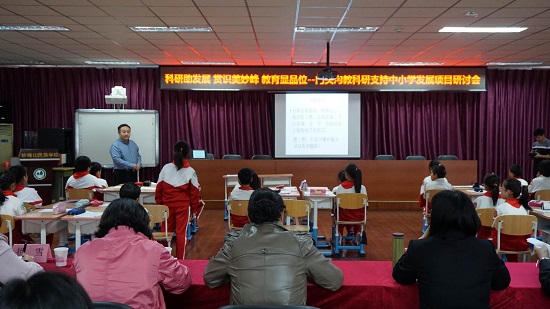 进校副校长赵薇就教科研支持中小学发展项目做了区域推进汇报。妙峰山民族学校校长马焕从学校基本情况、项目的设计与管理、推进与实施三个方面做了汇报。学校精彩的民族体育项目等特色活动展示了“赏识教育”的成
