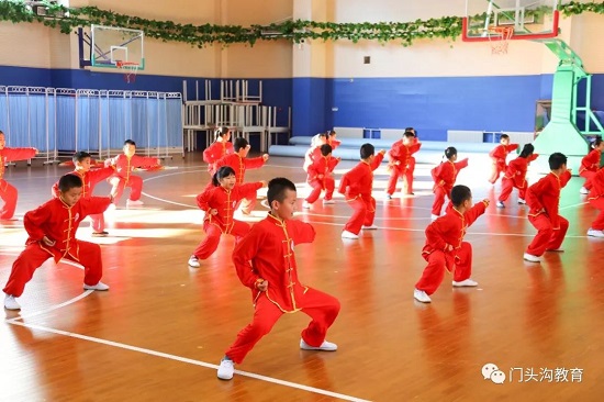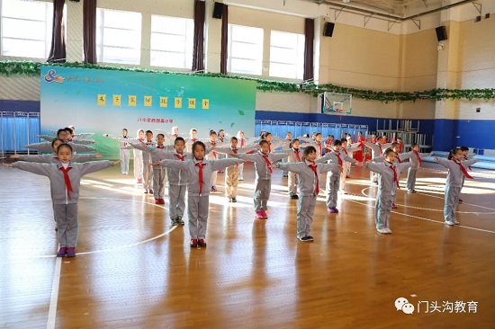 八中附小学生进行《礼仪操》及《武术》展示▲