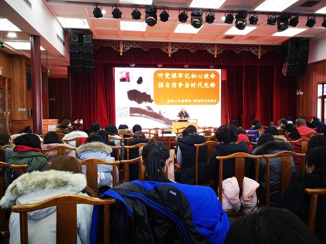 行”,用这些钱帮助农村弱势群体、弱势家庭的故事,发挥了党组织的先进性,让村民感受到了温暖。胡书记指出党员要坚定信仰,在不同的岗位上,要做到模范带头、担当与勤奋。每位老师边听边记录,边听边感悟,大家深受