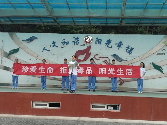 6月17日升旗仪式举行了主题教育演讲和全体师生参加禁毒签字承诺活动。韩澳同学进行了主题为“珍爱生命?拒绝毒品?阳光生活”的国旗下演讲,她倡议同学们认真学习预防毒品的知识,树立自我保护的意识,从我做起抵制毒品。学校还进行了全体师生签名承诺活动。为了进一步提高学生们禁毒的意识,学校还开展了禁毒知识问答的学习活动,学生们通过查阅资料,不仅了解了国际禁毒日的来历,还对毒品的危害等知识有了进一步认知。