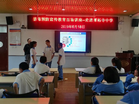6月18日,区禁毒办承办的禁毒预防宣传教育百场讲座走进潭柘寺中学开展宣讲活动。活动由禁毒办安璐娜老师主讲,全体初一初二年级学生参加。