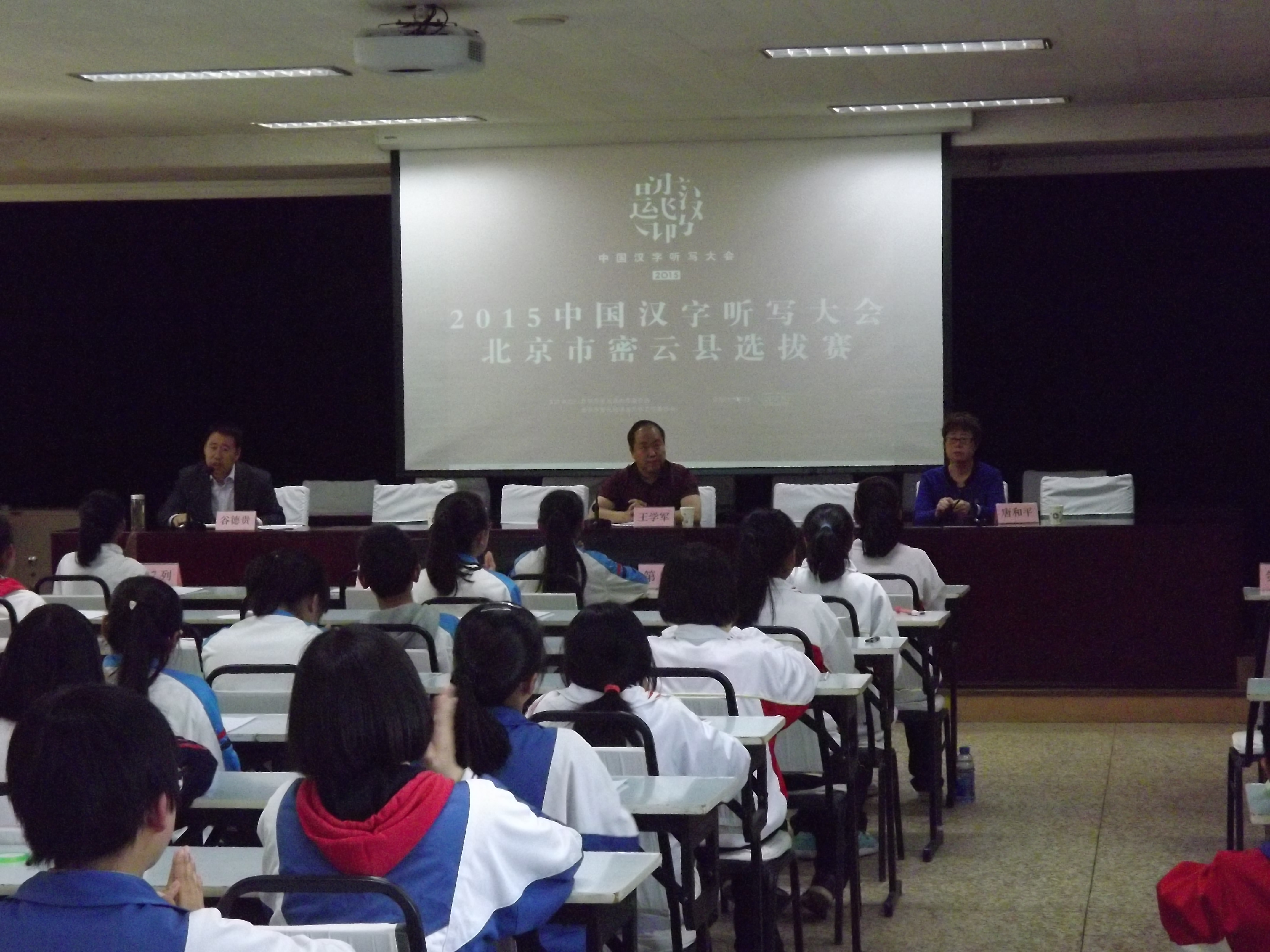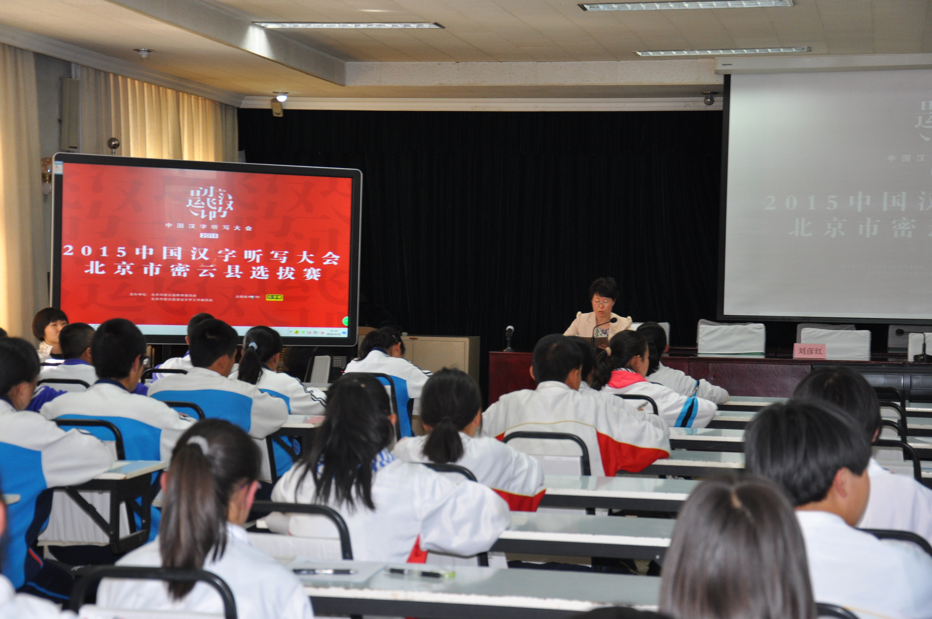 2015年4月22日下午,密云县语言文字工作委员会、密云县教育委员会在密云教委联合举办“密云县汉字听写大赛”。大赛采取现场书面试卷形式。此次大赛分为两个阶段:第一阶段,全县18所中学自行组织校级基础赛,每所学校择优推举5名选手参加县级决赛。第二阶段,县级决赛,由县语委、县教委共同组织。参加决赛的初一、初二年级选手攻击89人。经大赛组委会评选,5所中学获优秀组织奖,18名选手获得一等奖,36名选手获得二等奖,35名选手获得三等奖。