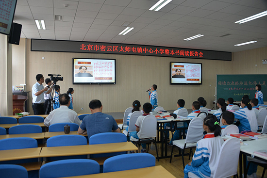 5月3日,太师屯镇中心小学正在举办“阅读红色经典 追忆伟人足迹”读书报告会。