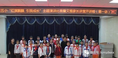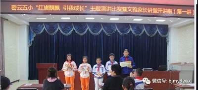 密云区第五小学“文雅家长讲堂”开讲啦!第一讲,邀请了二(1)班郭奕宸的妈妈,她是密云电视台新闻栏目主持人,为同学们讲授演讲的基础知识。如何利用气息和发音、感情、韵律、节奏、语气变化等来表现丰富的情绪,并加入协调有节的肢体语言做辅助,王老师们为在场的同学们做了示范,大家很兴奋,学习了演讲的学问和技巧,也发现了咬文嚼字的乐趣,热情高涨的孩子们用学习到的知识和技能用到了课堂学习和课外阅读中。