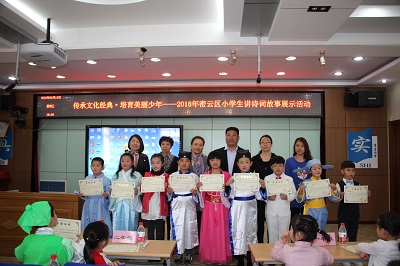 在校内人人展示的基础上,各小学共推荐1-3年级164名学生参加区级展示。4月2日-12日,区教委依托小学城乡教育共同体举行了七场展示活动,每场分为共同体各校阅读成果展示和讲诗词故事展示两个环节。经评选,新城子中心小学单艳桐、二小谢梓萱等62名学生获得一等奖,巨各庄中心小学齐琪、古北口中心小学柴米莱等102名学生获得二等奖。
