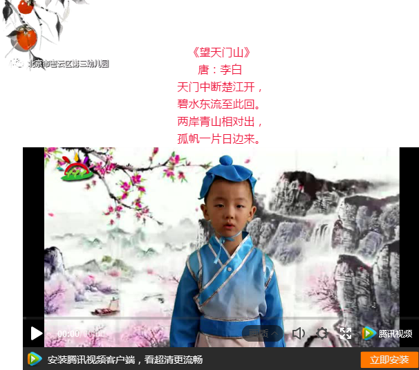 北京市密云区第三幼儿园一直坚持引领孩子们诵读千古美文,传承华夏文明。“读千年古诗词 做中华好少年”第二十二期诗词诵读如期和大家见面啦!