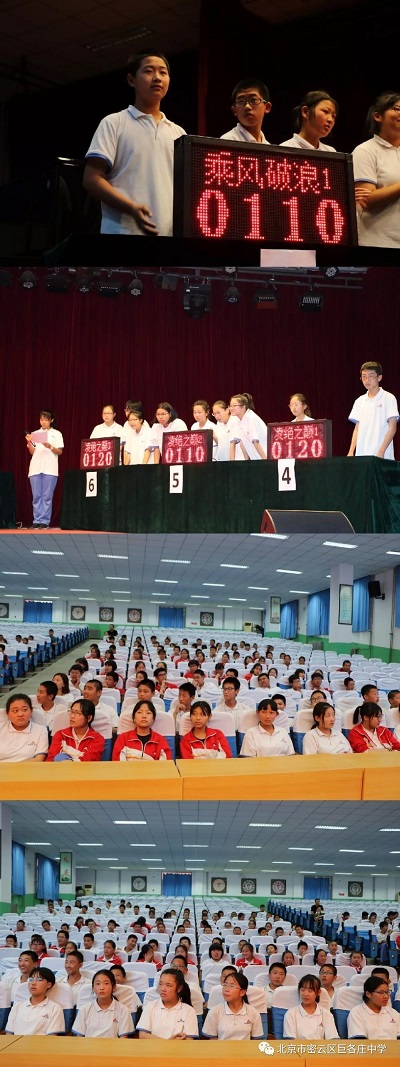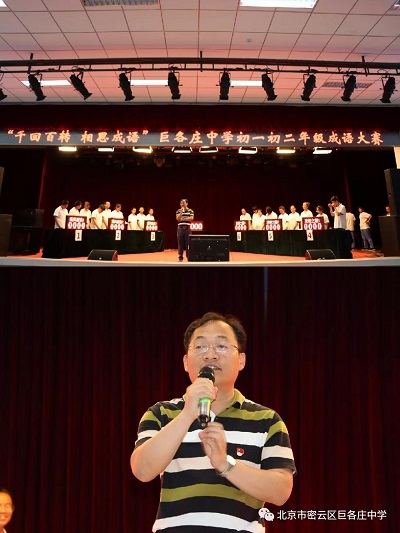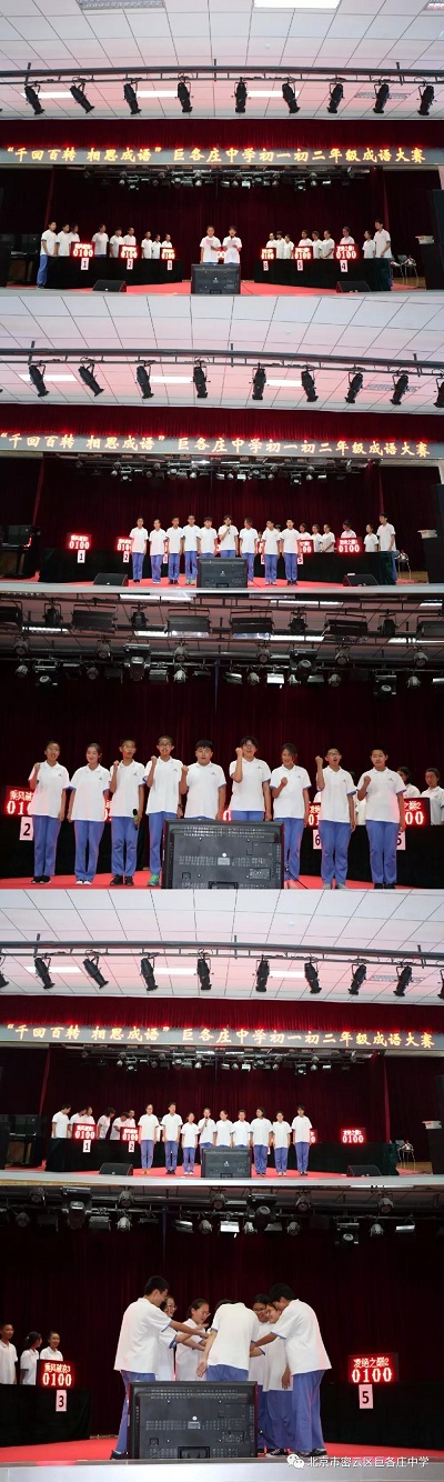 初一初二年级成语大会对抗赛,在双方激烈的呼口号中拉开帷幕。