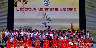 为了展示学校文雅少年综合素养,丰富校园文化生活,密云五小于6月14日上午,在大剧院开展了“诗雅花开”暨文雅少年综合素养展示活动。孩子们尽情欢歌,自由绽放。全校师生用诗词、音乐与舞蹈等,来展示我校的诗雅教育成果。