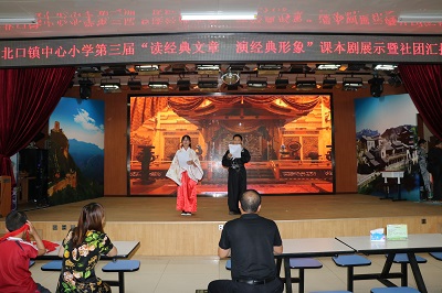 密云区古北口镇中心小学课本剧展示活动 6月22日,古北口镇中心小学组织了以“读经典文章 演经典形象”为主题的课本剧展示活动。各班选材经典,给人以启迪;在剧目的编排上很用心,音乐、舞蹈、流行语融于其中。同学们表演非常精彩,服装道具、背景画面一应俱全;语言表现感情充沛、淋漓尽致。通过课本剧展示活动,学生的组织能力、创造能力、口语表达能力和舞台表演能力都得到了大大的提高。