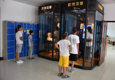 今年4月份,密云区图书馆设立了全区第一个爱不释书朗读亭。朗读亭集阅读、录制、分享、收听四大功能于一体,内设麦克风、耳机、触摸点评系统、桌椅和吧台,功能全面、环境舒适。朗读者可以自带图书或通过系统选择素材进行朗读,录制结束后,通过微信扫码试听或转发分享。截至8月20日,朗读亭共注册用户1078人,日均使用量超过100人次。